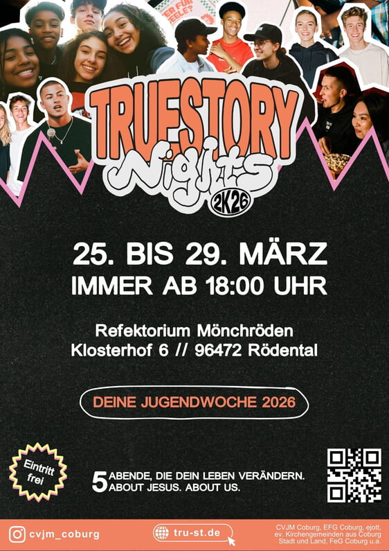 Und davor schon von 16.-21. März Truestory Kick Off Stream im Münzmeisterhaus in Coburg und an anderen Orten.